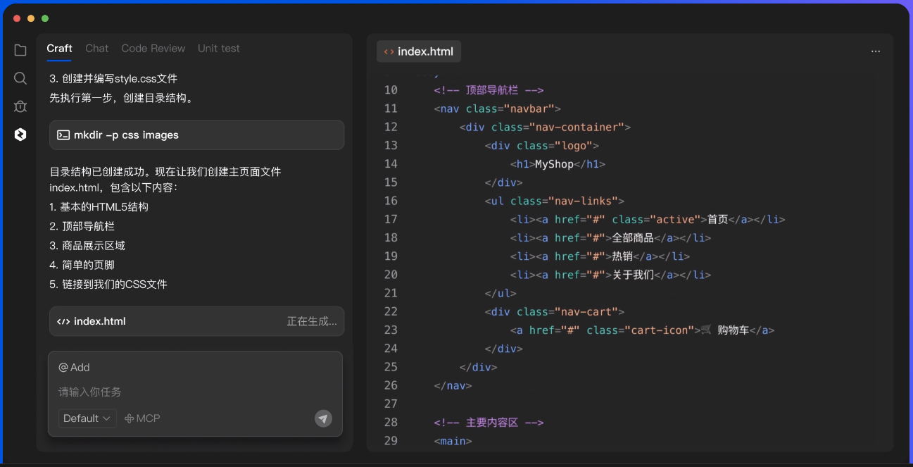 在开发环节,CodeBuddy IDE通过专属智能体矩阵完成代码生成与环境配置自动化。这个智能体矩阵由多个专业领域的智能体组成,它们各司其职,协同工作。有的智能体负责根据设计原型和需求文档生成高质量的代码,有的智能体则专注于自动化配置开发环境,确保代码能够在合适的环境中运行。通过这种自动化的方式,开发者无需手动编写大量的重复性代码,也无需花费大量时间进行环境配置,从而将更多的精力投入到核心业务逻辑的实现和优化上。